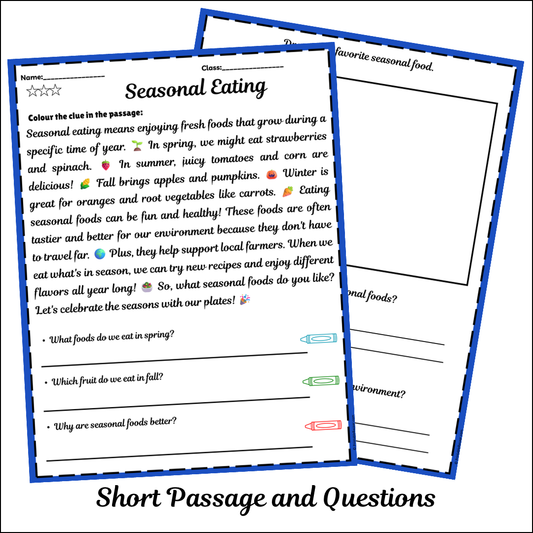 Seasonal Eating | Short Reading Comprehension Creative Worksheet