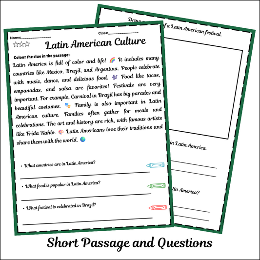 Latin American Culture | Short Reading Comprehension Creative Worksheet
