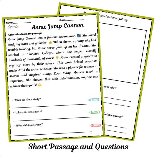 Annie Jump Cannon | Short Reading Comprehension Creative Worksheet