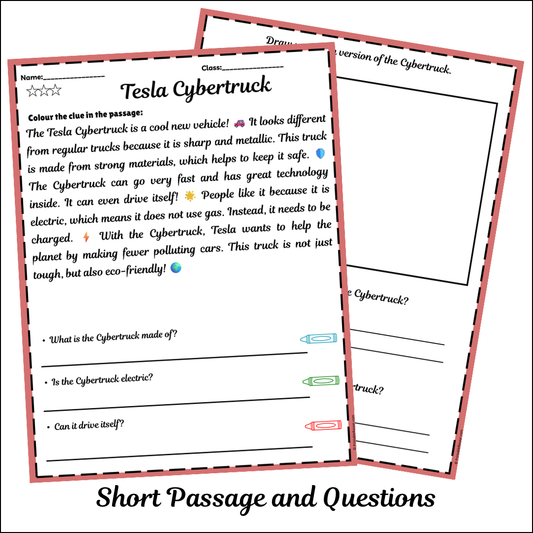 Tesla Cybertruck | Short Reading Comprehension Creative Worksheet