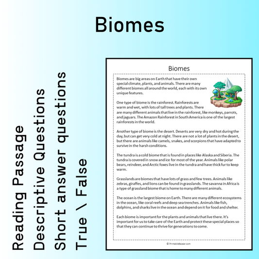 Biomes | Reading Comprehension Passage Printable Worksheet
