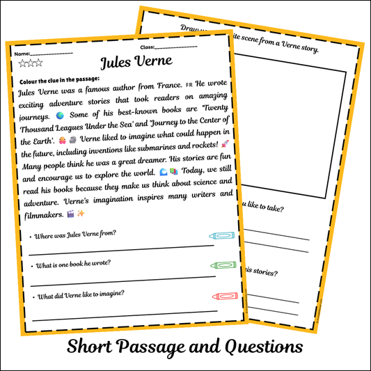 Jules Verne | Short Reading Comprehension Creative Worksheet