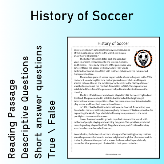 History of Soccer | Reading Comprehension Passage Printable Worksheet