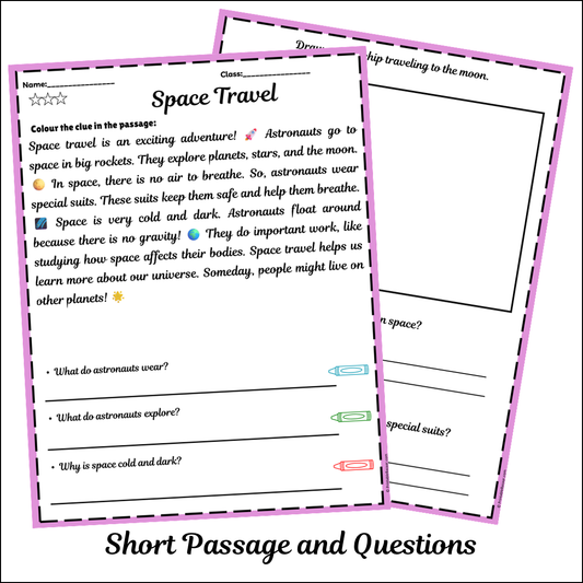 Space Travel | Short Reading Comprehension Creative Worksheet