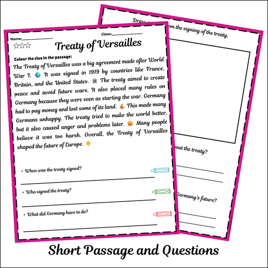 Treaty of Versailles | Short Reading Comprehension Creative Worksheet