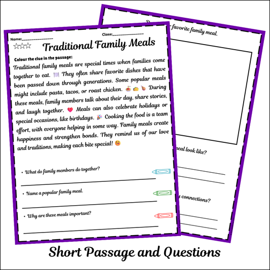 Traditional Family Meals | Short Reading Comprehension Creative Worksheet