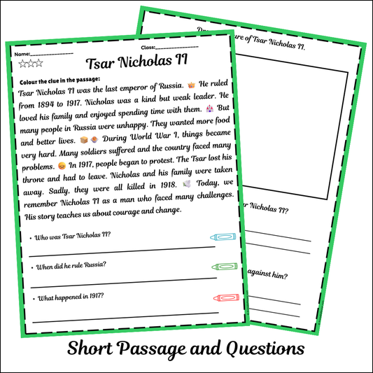 Tsar Nicholas II | Short Reading Comprehension Creative Worksheet