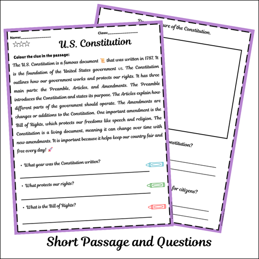 U.S. Constitution | Short Reading Comprehension Creative Worksheet