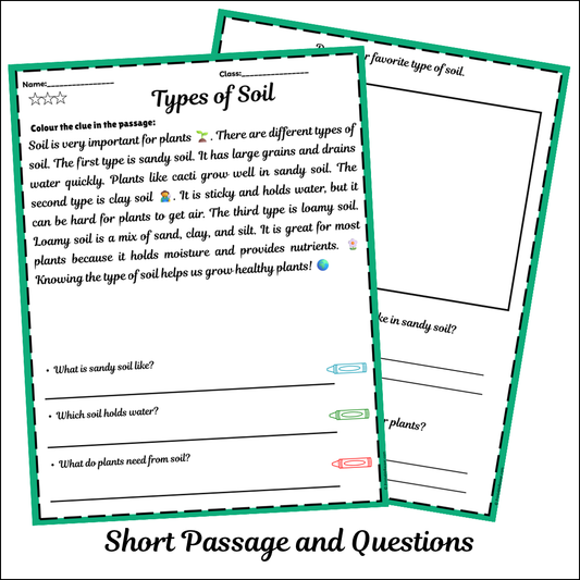 Types of Soil | Short Reading Comprehension Creative Worksheet