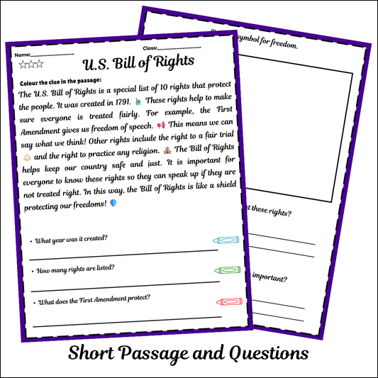 U.S. Bill of Rights | Short Reading Comprehension Creative Worksheet
