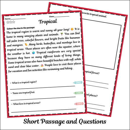 Tropical | Short Reading Comprehension Creative Worksheet