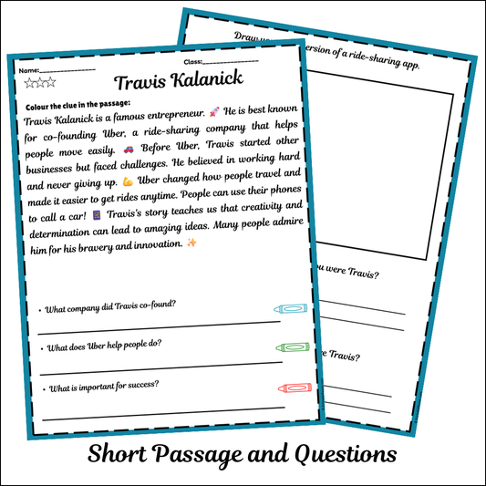 Travis Kalanick | Short Reading Comprehension Creative Worksheet