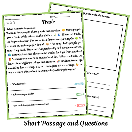 Trade | Short Reading Comprehension Creative Worksheet