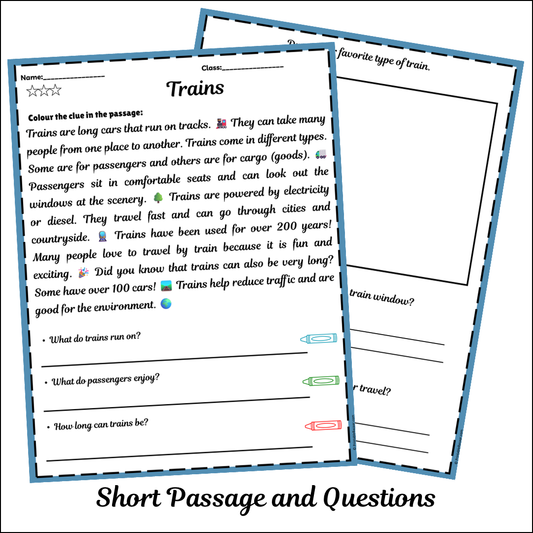 Trains | Short Reading Comprehension Creative Worksheet