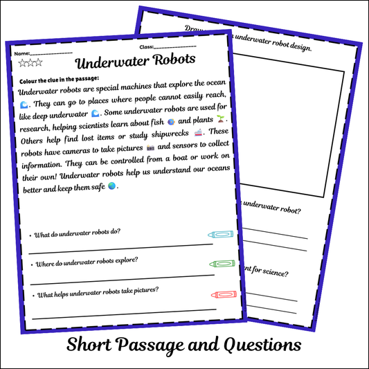 Underwater Robots | Short Reading Comprehension Creative Worksheet