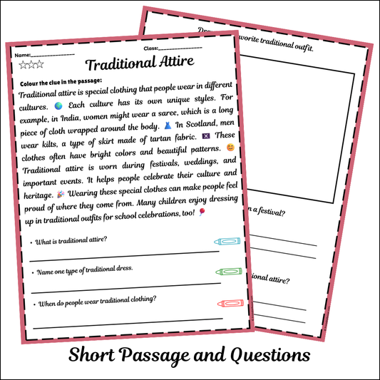 Traditional Attire | Short Reading Comprehension Creative Worksheet