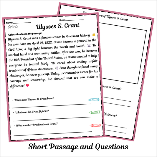Ulysses S. Grant | Short Reading Comprehension Creative Worksheet