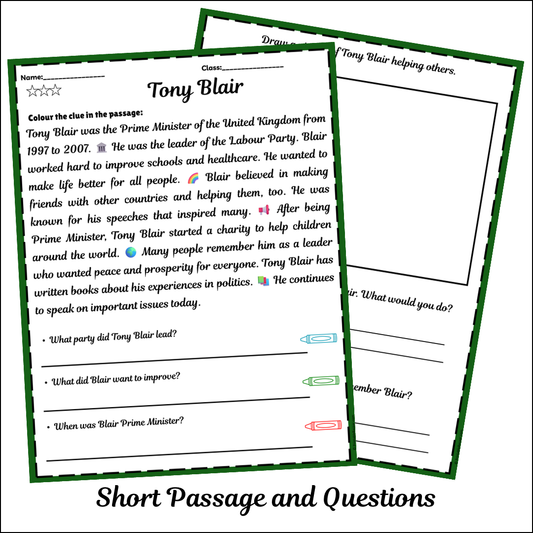 Tony Blair | Short Reading Comprehension Creative Worksheet