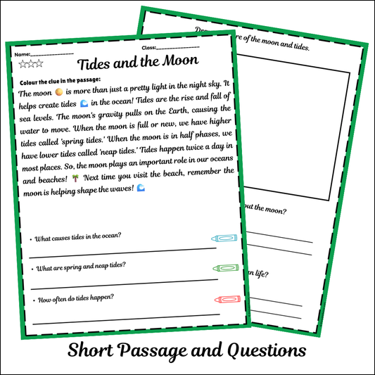 Tides and the Moon | Short Reading Comprehension Creative Worksheet