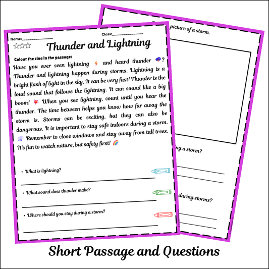 Thunder and Lightning | Short Reading Comprehension Creative Worksheet