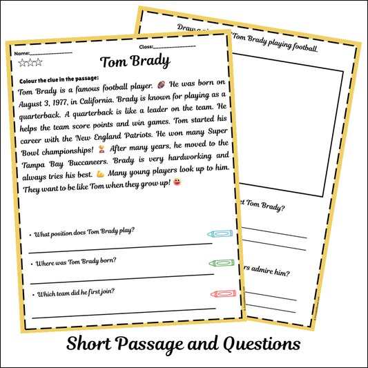 Tom Brady | Short Reading Comprehension Creative Worksheet