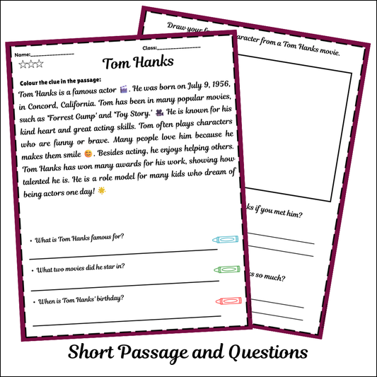 Tom Hanks | Short Reading Comprehension Creative Worksheet
