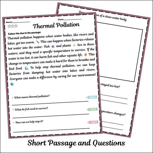 Thermal Pollution | Short Reading Comprehension Creative Worksheet