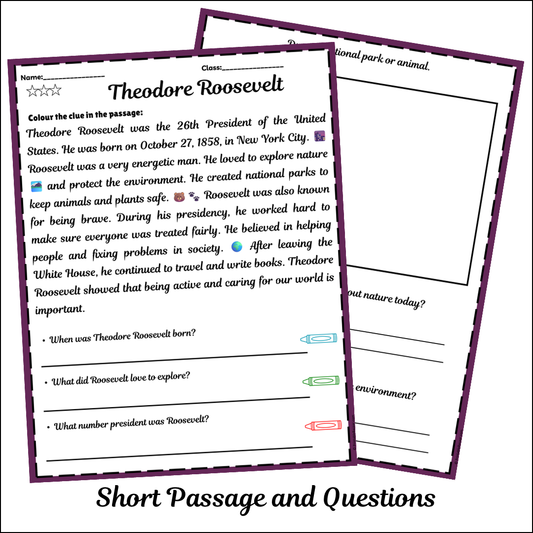 Theodore Roosevelt | Short Reading Comprehension Creative Worksheet