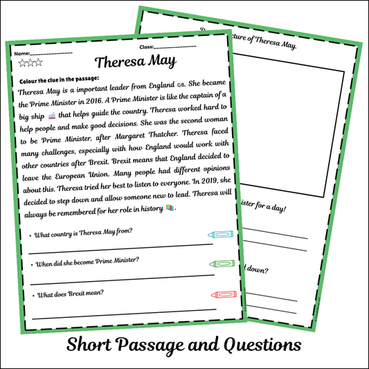 Theresa May | Short Reading Comprehension Creative Worksheet