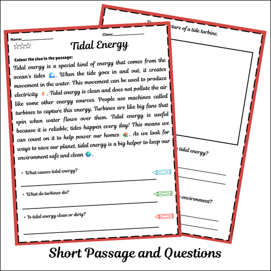 Tidal Energy | Short Reading Comprehension Creative Worksheet