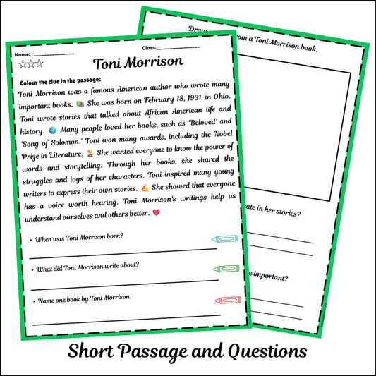 Toni Morrison | Short Reading Comprehension Creative Worksheet