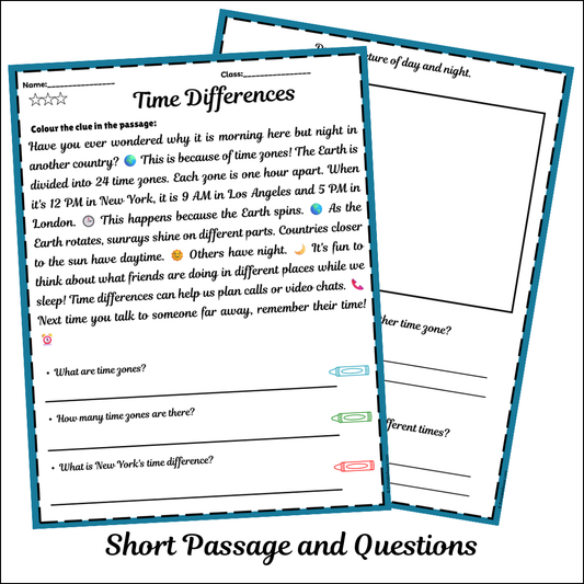 Time Differences | Short Reading Comprehension Creative Worksheet