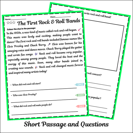 The First Rock & Roll Bands | Short Reading Comprehension Creative Worksheet