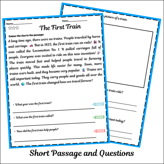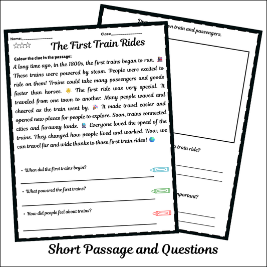 The First Train Rides | Short Reading Comprehension Creative Worksheet
