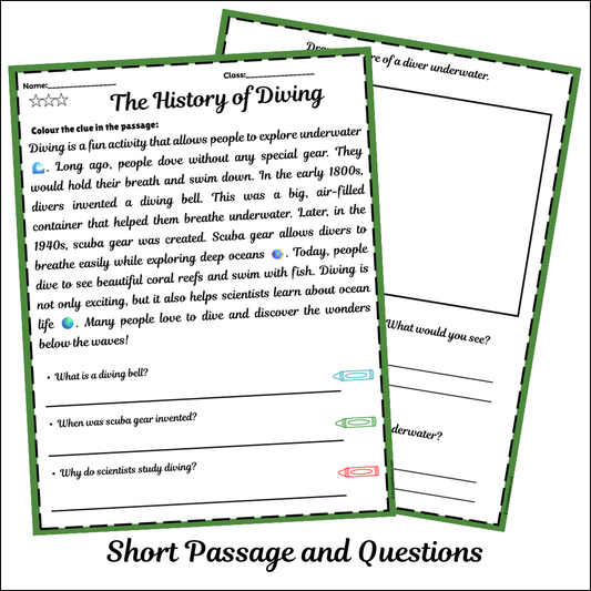 The History of Diving | Short Reading Comprehension Creative Worksheet