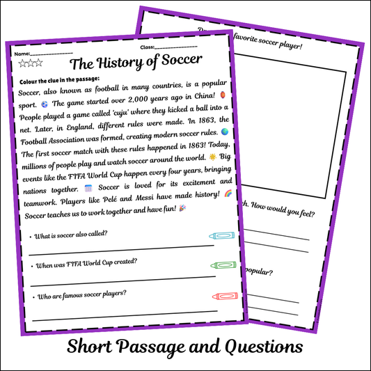 The History of Soccer | Short Reading Comprehension Creative Worksheet