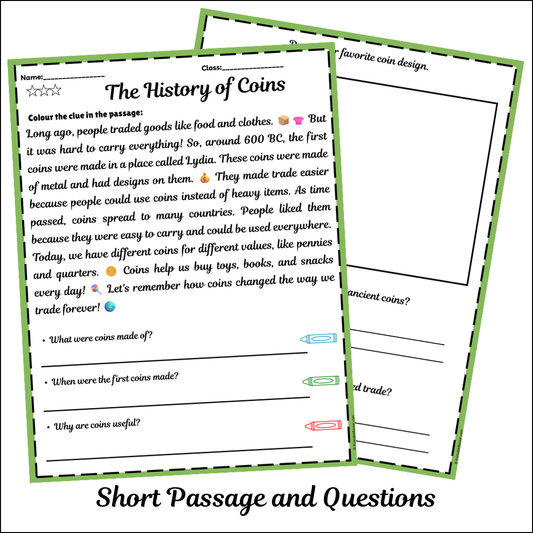 The History of Coins | Short Reading Comprehension Creative Worksheet