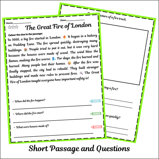 The Great Fire of London | Short Reading Comprehension Creative Worksheet