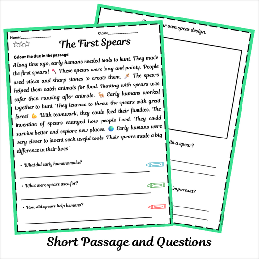 The First Spears | Short Reading Comprehension Creative Worksheet