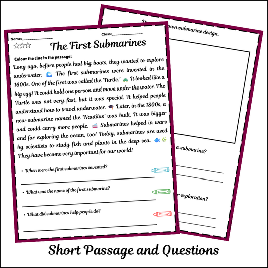 The First Submarines | Short Reading Comprehension Creative Worksheet
