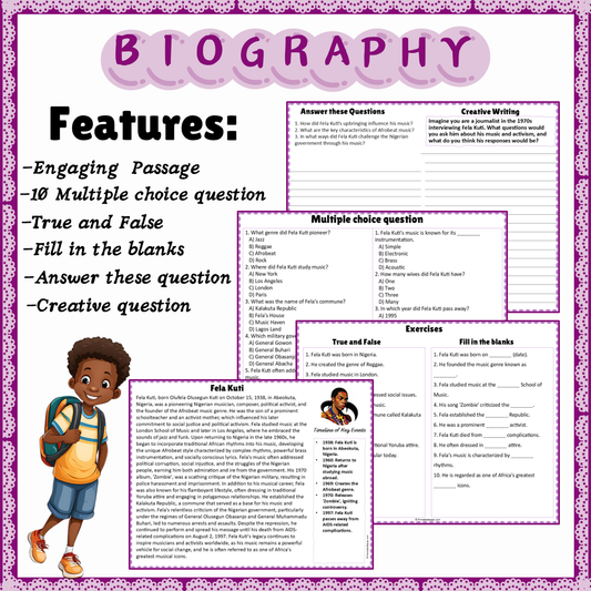 Fela Kuti | Biography Reading Comprehension and Questions Worksheet