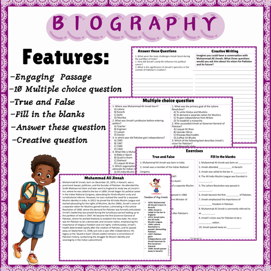 Muhammad Ali Jinnah | Biography Reading Comprehension and Questions Worksheet