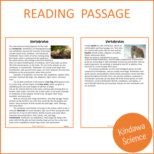 Vertebrates Reading Comprehension Passage and Questions | Printable PDF