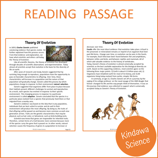 Theory Of Evolution Reading Comprehension Passage and Questions | Printable PDF