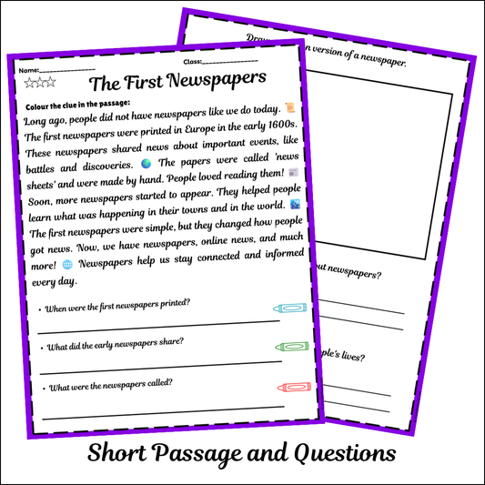 The First Newspapers | Short Reading Comprehension Creative Worksheet