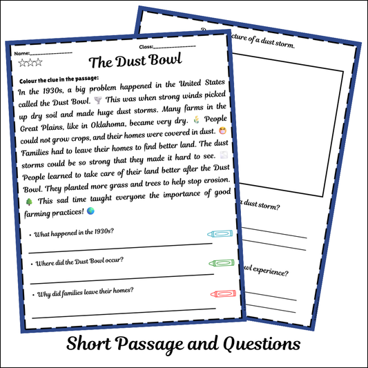 The Dust Bowl | Short Reading Comprehension Creative Worksheet
