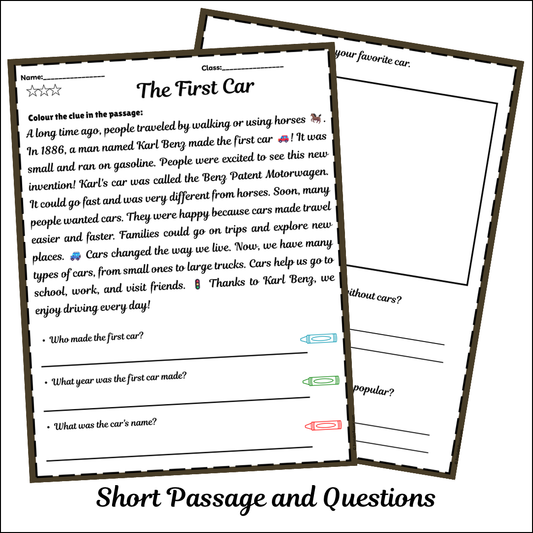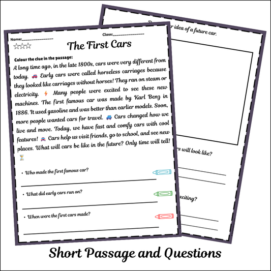 The First Cars | Short Reading Comprehension Creative Worksheet