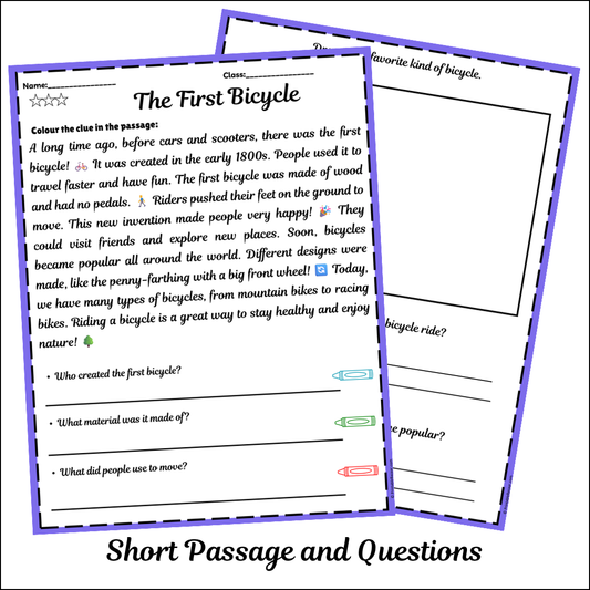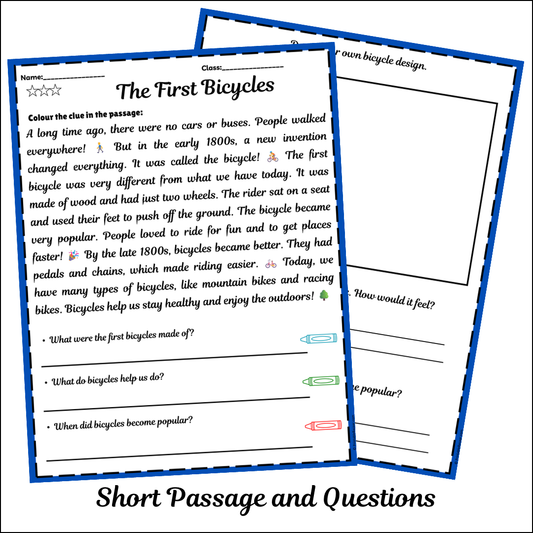 The First Bicycles | Short Reading Comprehension Creative Worksheet