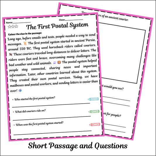 The First Postal System | Short Reading Comprehension Creative Worksheet