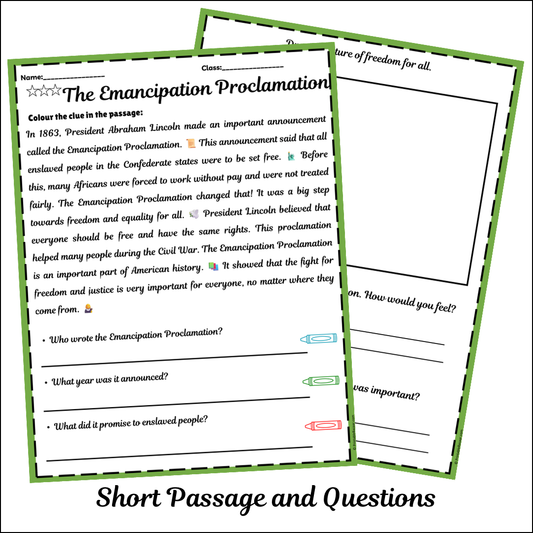 The Emancipation Proclamation | Short Reading Comprehension Creative Worksheet
